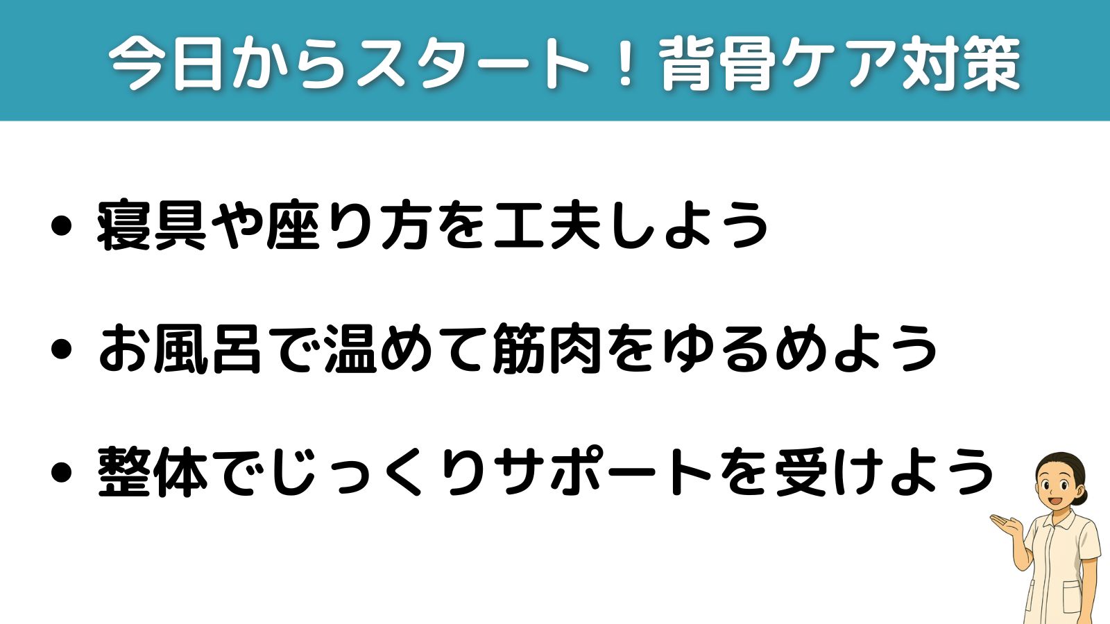 【まとめ】小さな工夫で背骨は変わる。今日からできるケアを続けていこう!
